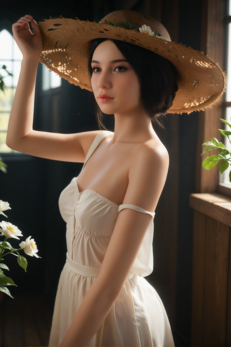 Addilyn is a vision of mature elegance, her short black hair framing deep, enchanting eyes that seem to draw you into her calm and gentle demeanor. Dressed in a simple white spaghetti strap dress that highlights her D-cup curves, she stands gracefully by the windowsill, gazing out at the greenery. A chic straw hat adds a soft, understated charm, while her lifelike skin offers a natural, warm touch. Every detail of Addilyn’s design is carefully crafted, creating a partner who exudes warmth and beauty.