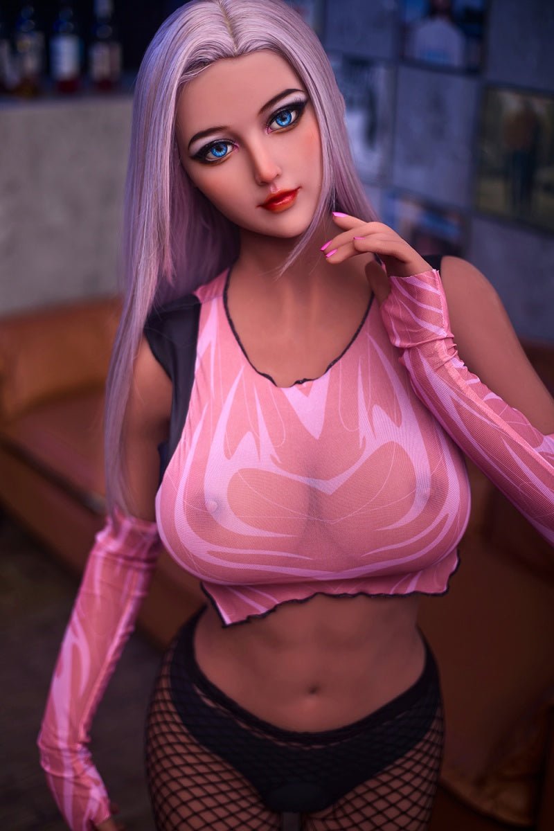 Bristol is a strikingly sensual and lifelike sex doll, designed to showcase the unique allure of a captivating woman. Her flowing, silky purple hair complements her mesmerizing blue eyes, exuding an air of mystery and irresistible charm. Clad in a figure-hugging lavender sheer camisole, a short leather skirt, and fishnet stockings paired with black combat boots, Bristol’s bold and enticing style sets her apart. Her F-cup curves add to her allure, delivering an unforgettable visual and tactile experience.