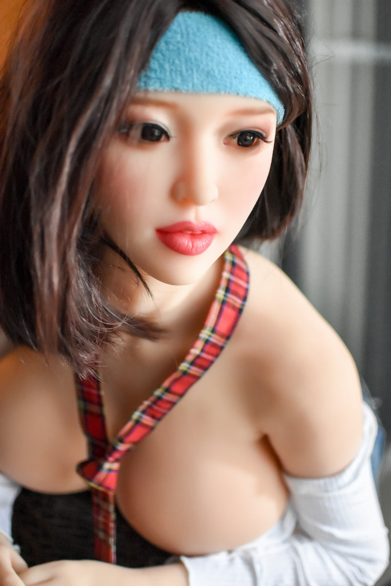 Cassidy is a practical yet uniquely captivating sex doll with a chic, confident look. Her clean, short hairstyle is paired with a vibrant blue sports headband, adding a touch of playful energy. She wears a low-cut, white cropped long-sleeve top that highlights her elegant collarbones and alluring F-cup curves. Her denim jeans, complemented by fishnet stockings and white high heels, blend casual style with sensual appeal. Every detail, from her realistic skin texture to her meticulously crafted outfit, makes Cassidy the perfect companion for intimate moments.