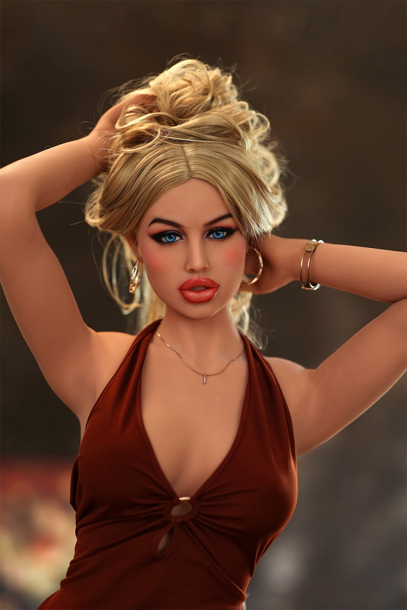 Marlee is a lifelike sex doll that exudes elegance and charm. Her soft, golden-brown curls and captivating blue eyes complement her deep V burgundy dress, showcasing a blend of refinement and sensuality. With delicate chokers, a silver necklace, and her signature C-cup figure, Marlee offers a visually and physically enticing experience.