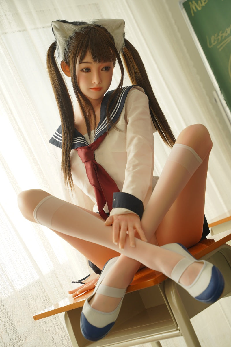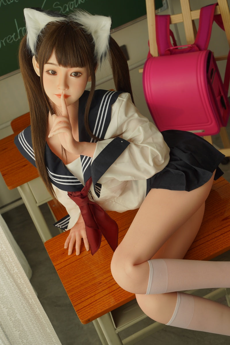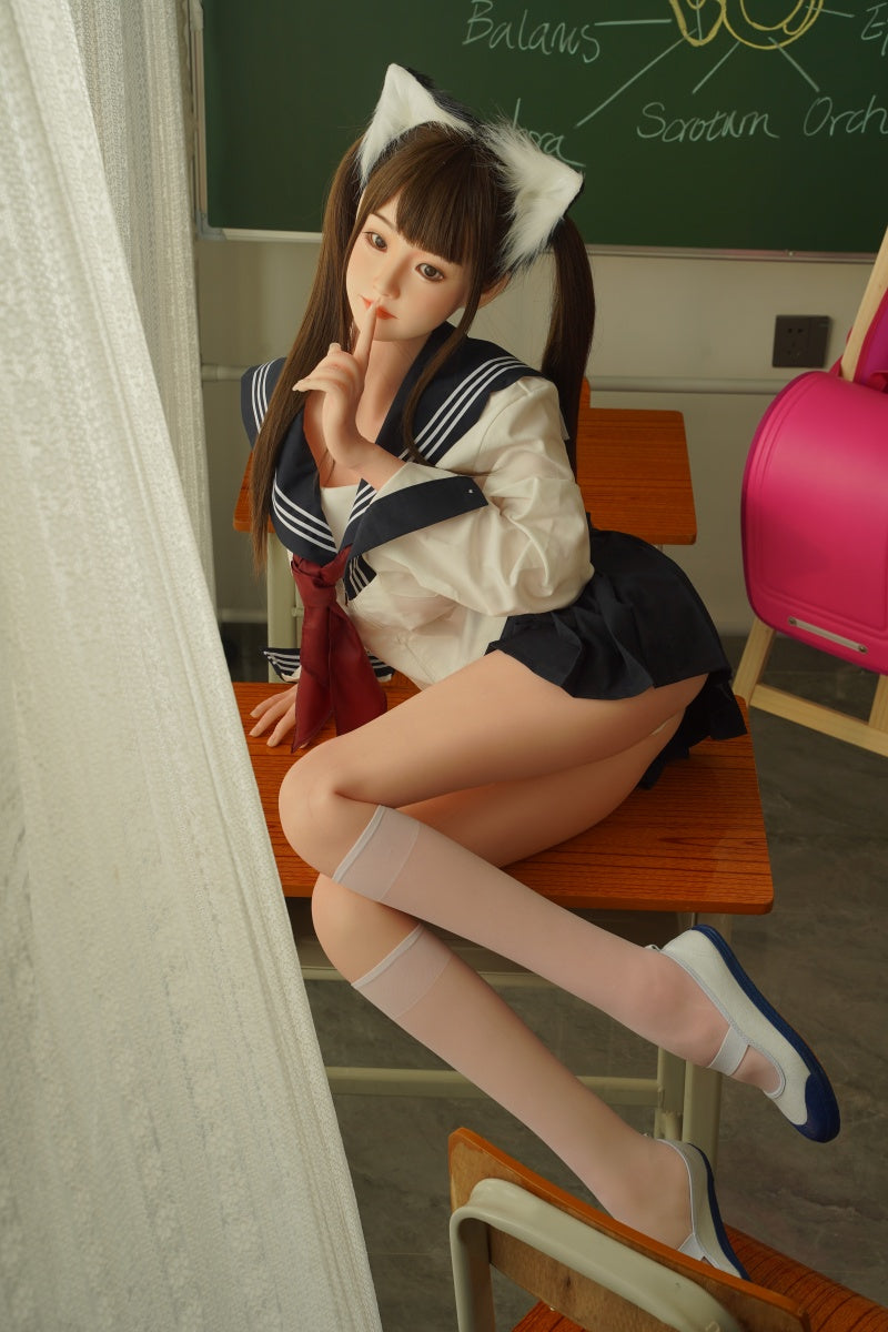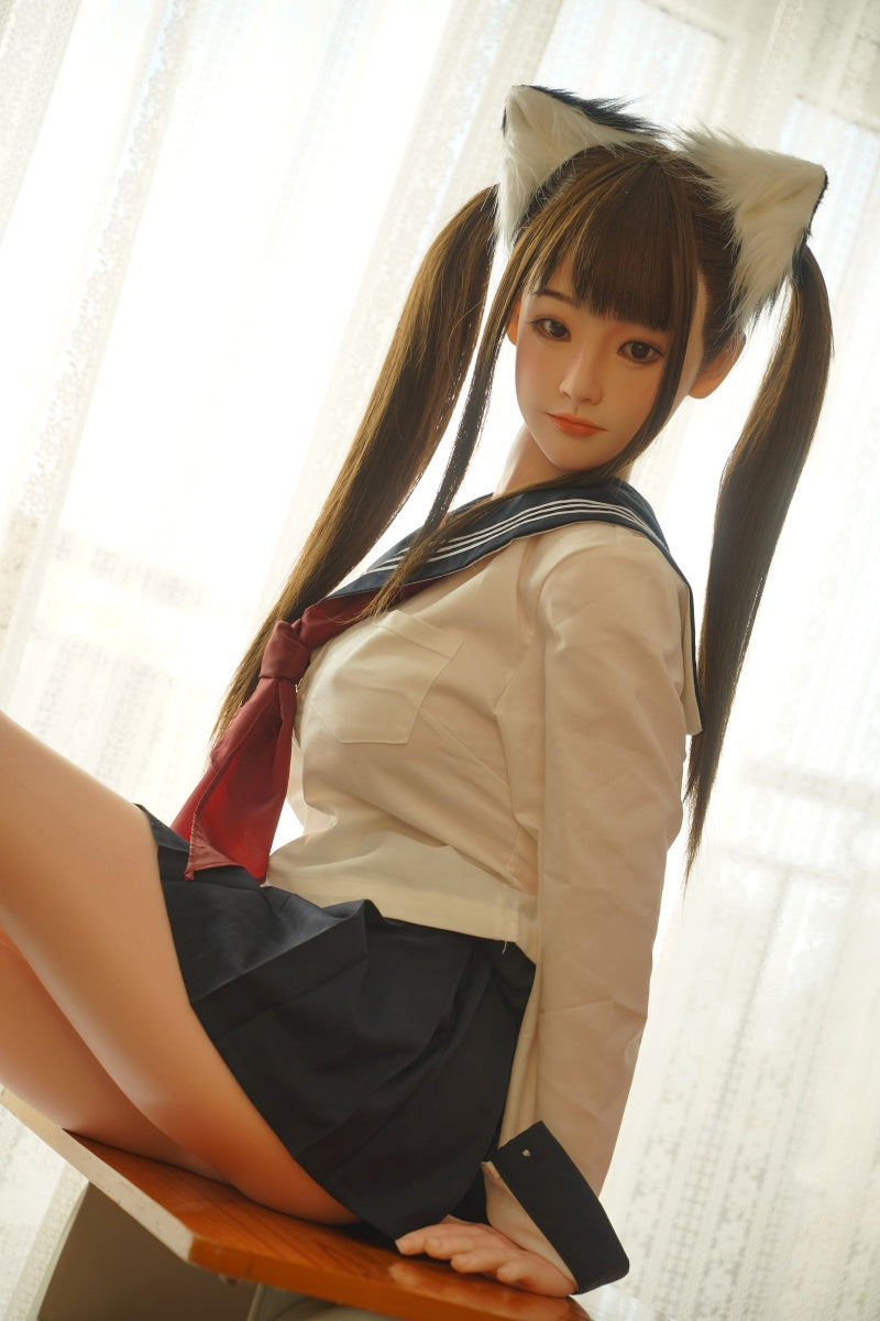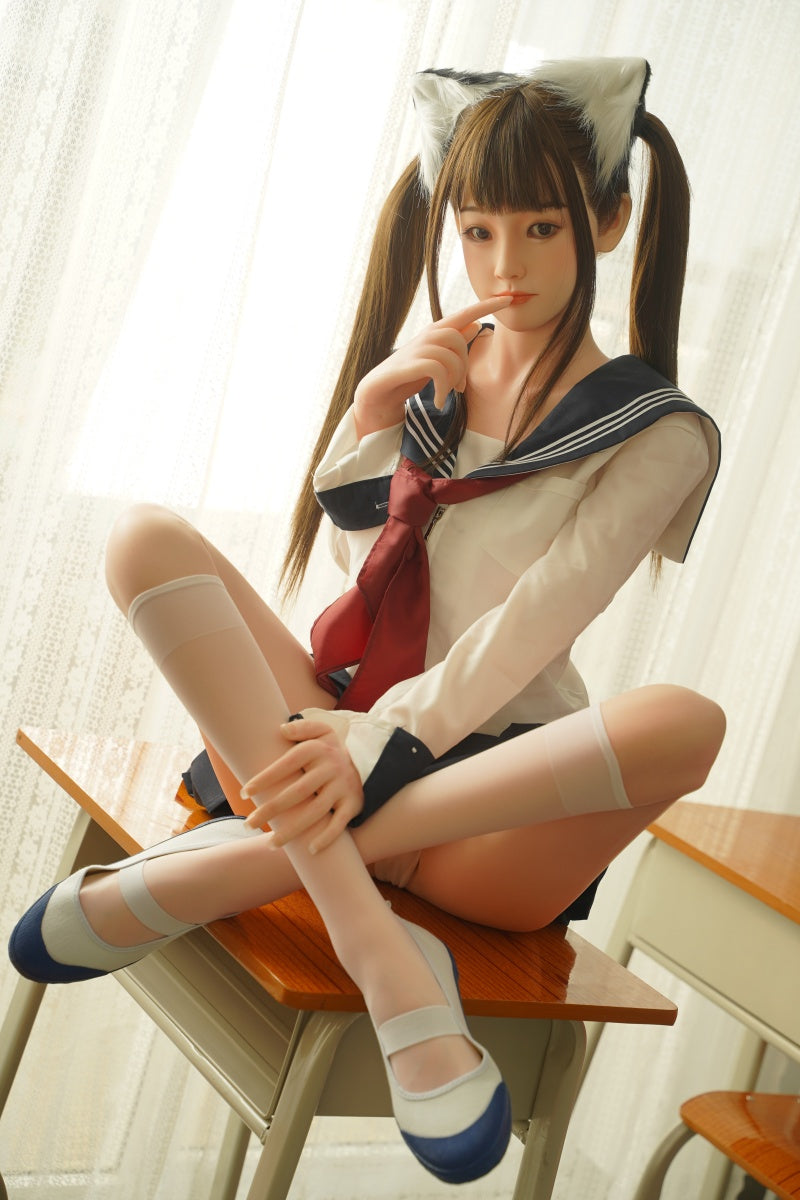 Elise is a vibrant and youthful sex doll with clear, expressive black eyes that exude an innocent charm. Her smooth brown hair is styled into two playful long ponytails, perfectly complementing her classic schoolgirl uniform to create a fresh, pure campus vibe. Adding to her allure are a pair of adorable cat ears and a soft cat tail, details that imbue her with a unique and captivating personality.