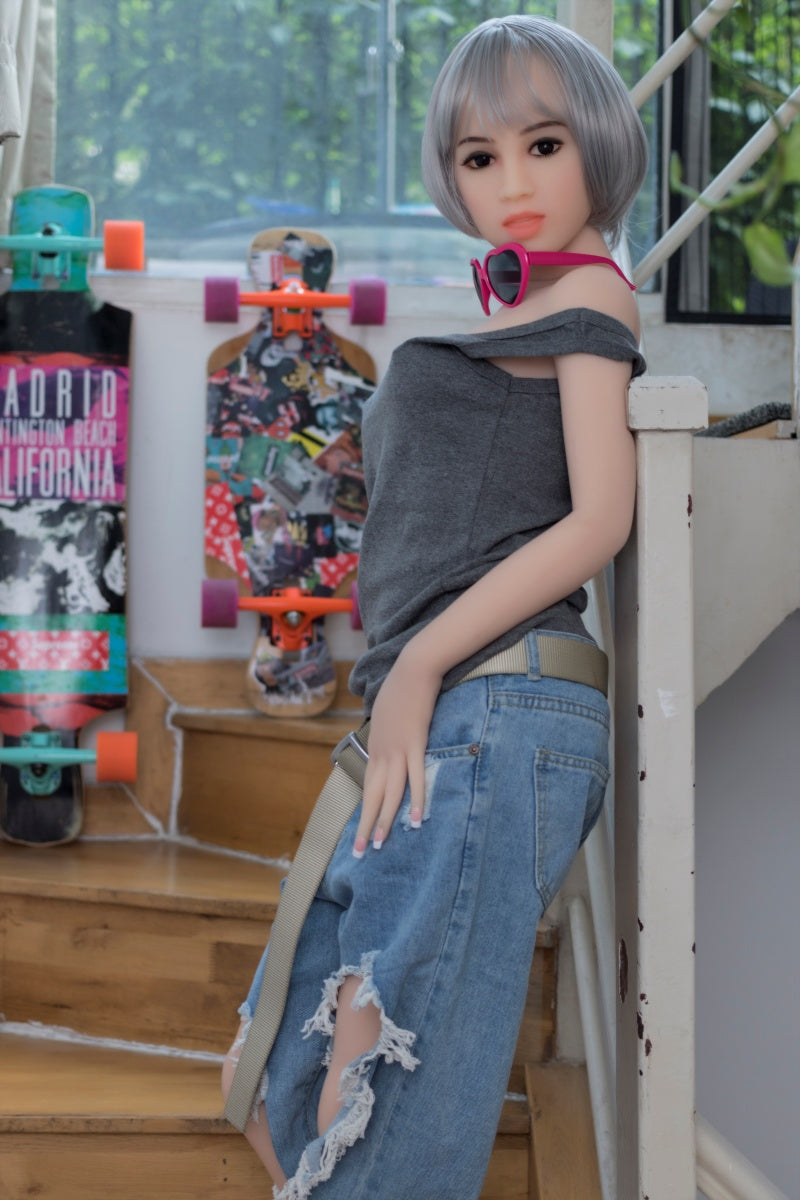 Georgia possesses an enchanting freshness that immediately captivates. Her soft gray hair flows like morning light, perfectly complementing her clear black eyes that sparkle with warmth and vivacity. Her well-proportioned figure, featuring natural C-cup curves, is as graceful as it is alluring. Dressed in a simple tank top and distressed denim jeans, Georgia exudes a relaxed yet fashionable style. Adding a touch of playful charm are her heart-shaped sunglasses, giving her the appearance of a carefree heroine straight out of a youthful, romantic film. She embodies both vitality and elegance, blending innocence and allure in a way that makes every detail of her design undeniably appealing.